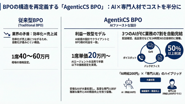 「AI時給200円」のBPOサービス カラクリがEC特化型『AgenticCS BPO』を提供開始