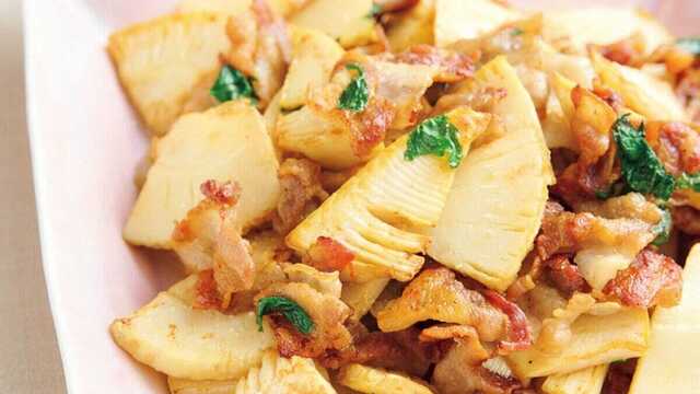 水煮で簡単「タケノコと豚の塩炒め」薬膳レシピ。青ジソと豚バラの甘みでご飯が進む