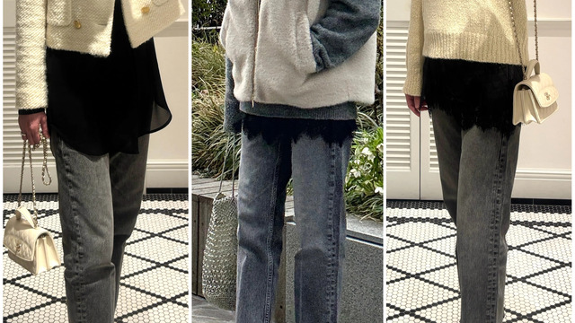 今年のデニムは、やや細身なグレーが気分!着回し力も抜群です。