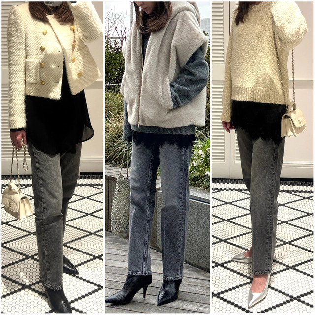 今年のデニムは、やや細身なグレーが気分!着回し力も抜群です。